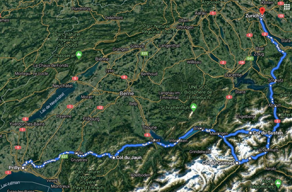 A l’origine, je partais pour aller faire le Jaun, le Susten, Zurich , les chutes du Rhin, Délémont et retour par les chemins de traverse … j’ai échoué sur la seconde partie , tout en n’ayant rien a regretter 😉