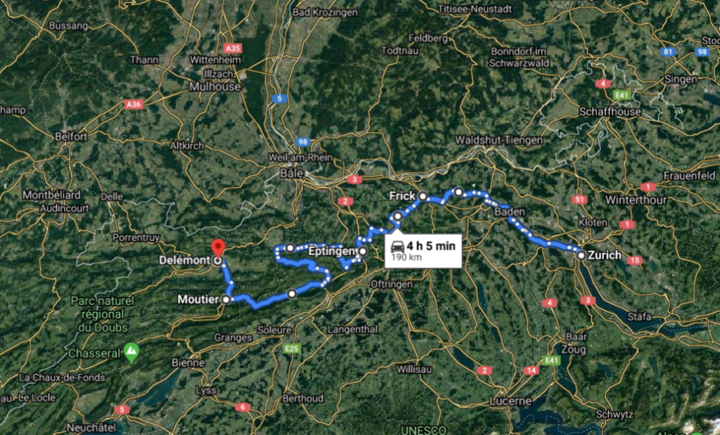 une fois arrivé a Eptingen, ou se fabrique l’eau d’Eptinger, la route en direction du Jura était fermée entièrement pour travaux, j’ai donc décidé de m’arrêter pour faire le point, prendre un thé et voir quelles étaient mes options.