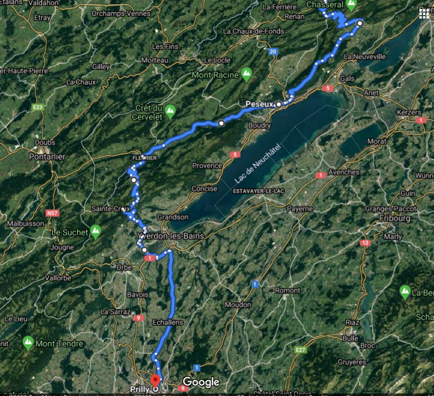 ensuite quelques virolets sympathiques en direction de Peseux, ou j’ai eu l’honneur de prendre deux trois gouttes de pluie … qui se sont transformées en un orage gargantuesque , le temps de me parquer et de me mettre a l’abri sur une terrasse couverte … 😉